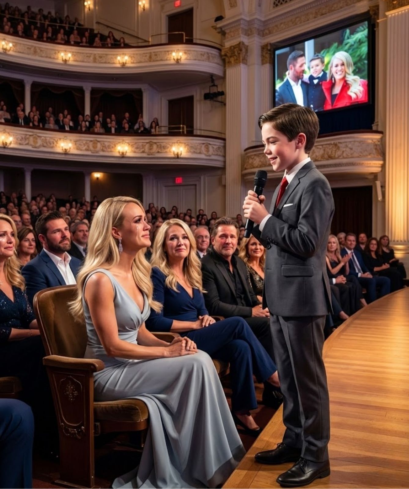 Without announcement or buildup, **Carrie Underwood’s son, Isaiah Fisher, stepped onto the stage. There were no flashing lights chasing him, no dramatic introduction calling attention to his name. He simply walked forward, calm and composed, carrying something invisible but unmistakable — intention.