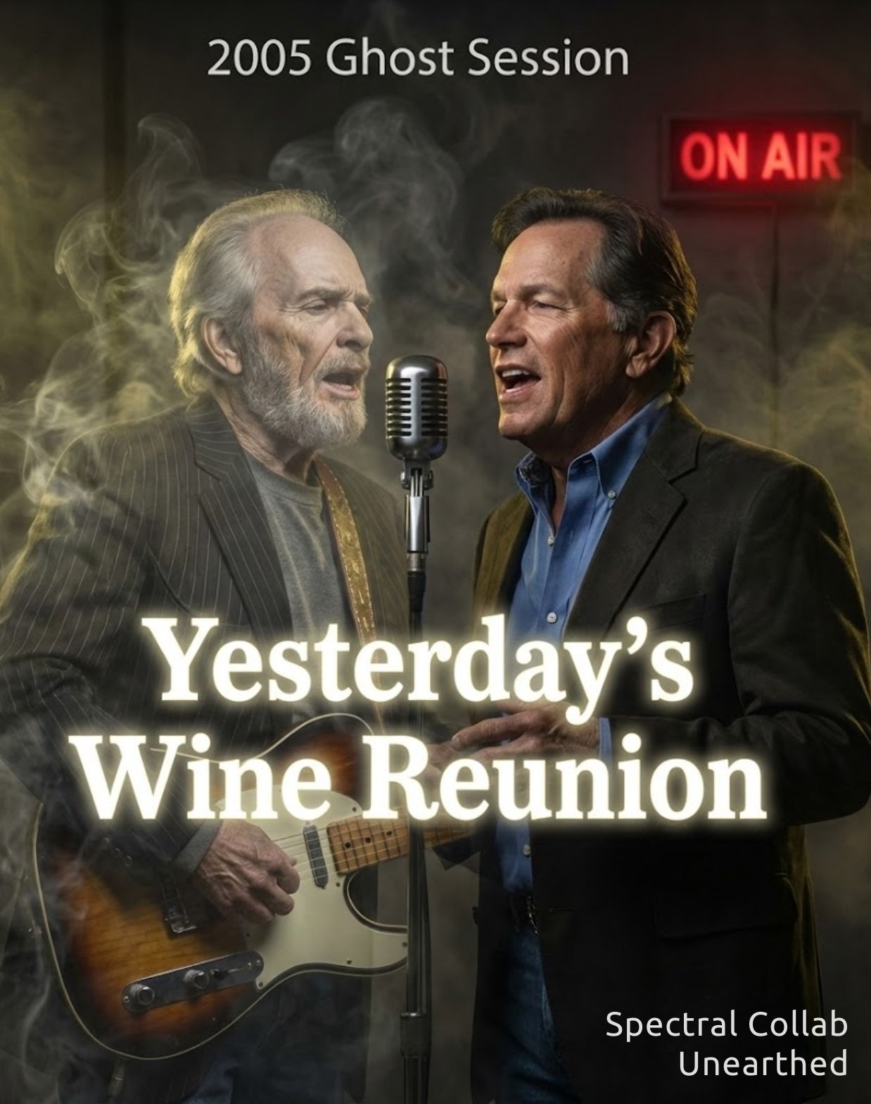 Tonight, for the first time, the world hears the newly digitized 2005 session where George laid down a stripped, aching version of “Yesterday’s Wine.” What no one expected was what engineers found hiding beneath the tape’s noise floor: Merle’s unmistakable voice, faint but present, drifting like a ghost through the chords — a leftover harmony captured years earlier, now reborn inside George’s performance.