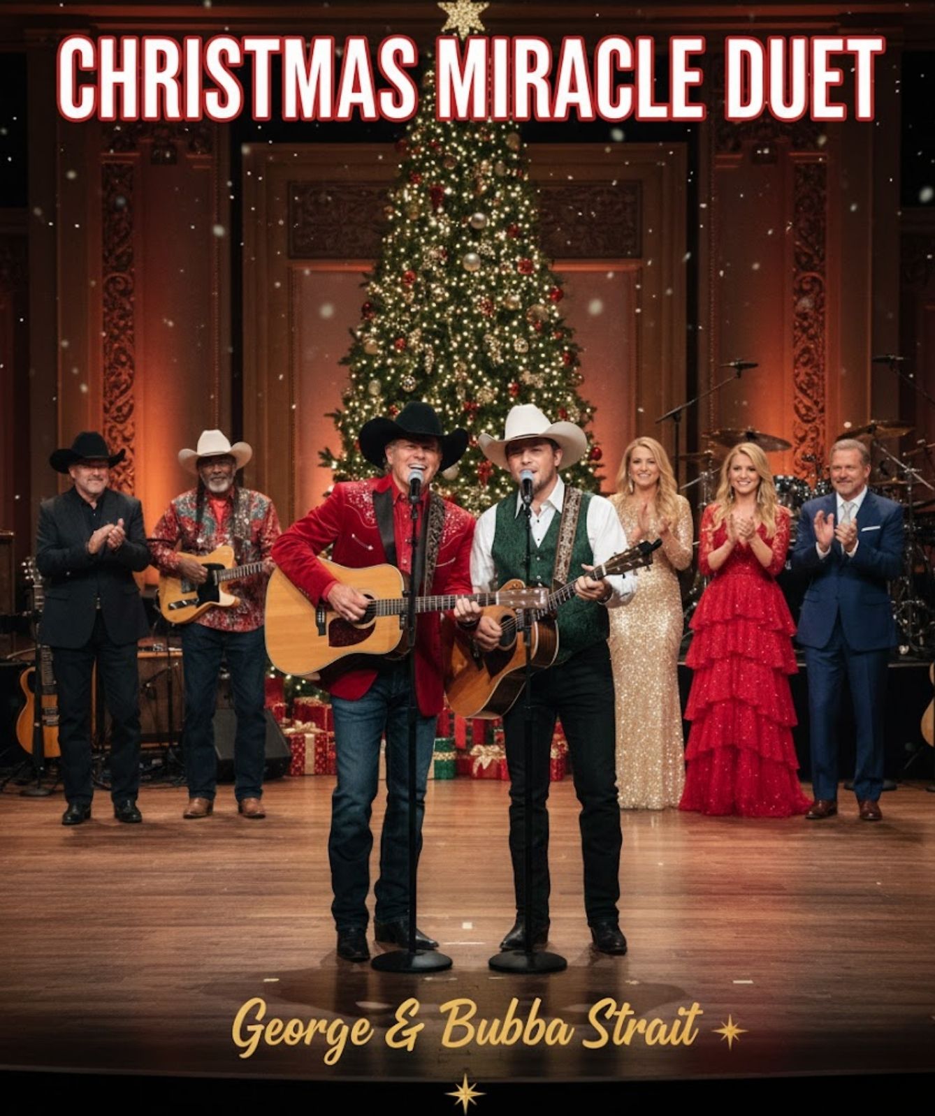 Standing beside him was his son, George Strait Jr. — known to family as Bubba — and for the first time ever, father and son lifted their voices together in a Christmas duet that felt less like a performance and more like a passing of the torch.