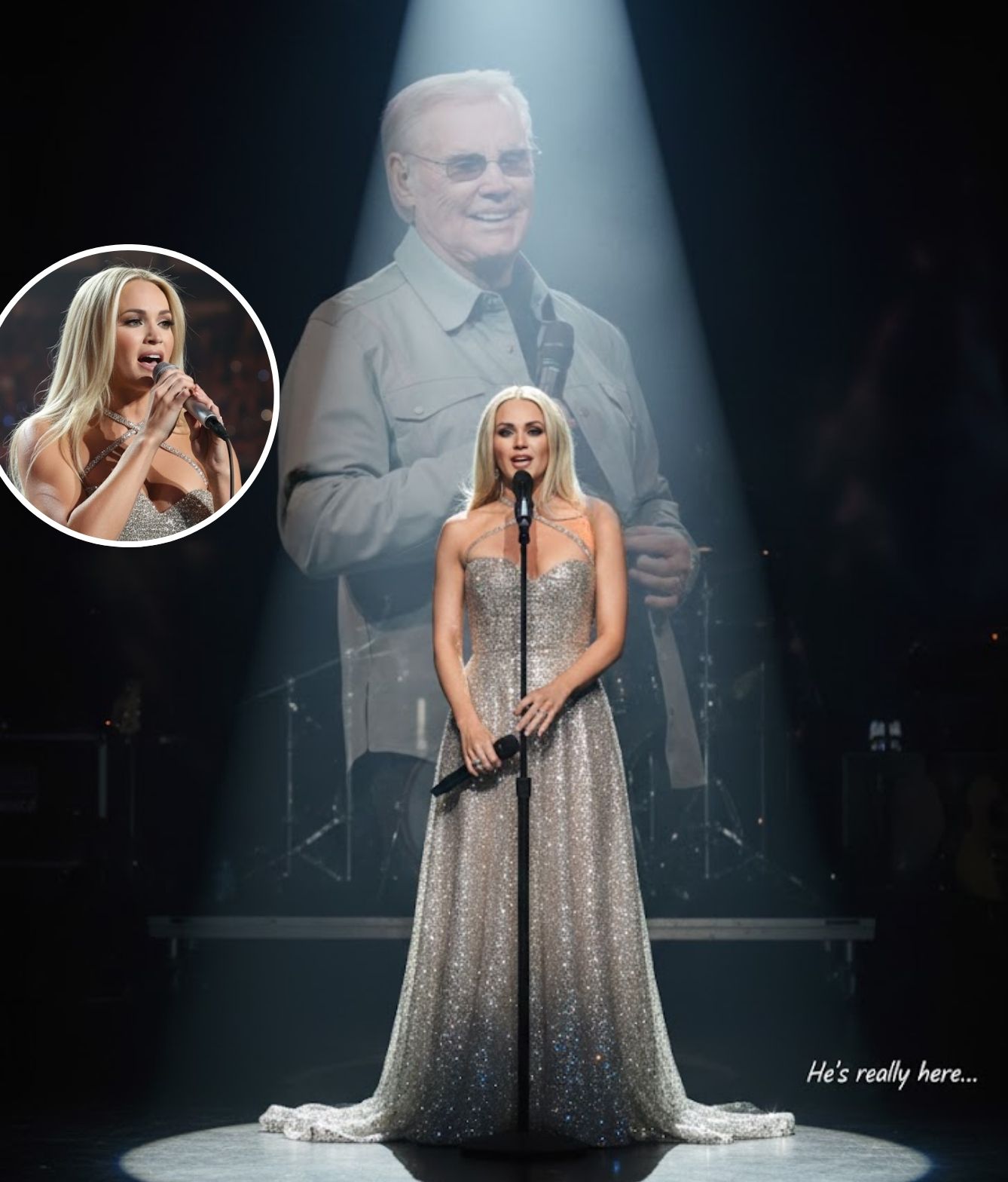 For many, it felt like watching two eras join hands — the new voice of American country carrying the torch of the old, not replacing it, but honoring it with every breath. Carrie’s voice became a living bridge, a warm current flowing through the heart of George Jones’s legacy, reminding everyone that some artists leave more than songs behind. They leave a presence. They leave a spirit that refuses to grow quiet.
