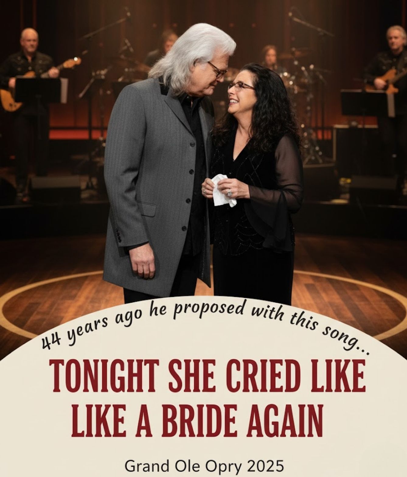 There are rare moments in country music when the past steps out of the shadows, when memory becomes something you can almost touch, and when a single note can take two people — and everyone watching — back to the place where a lifelong promise was first spoken. That was exactly what happened when Ricky Skaggs turned toward Sharon White under the soft glow of the Opry lights and began singing the same song he sang on the night he asked her to share the rest of his life.