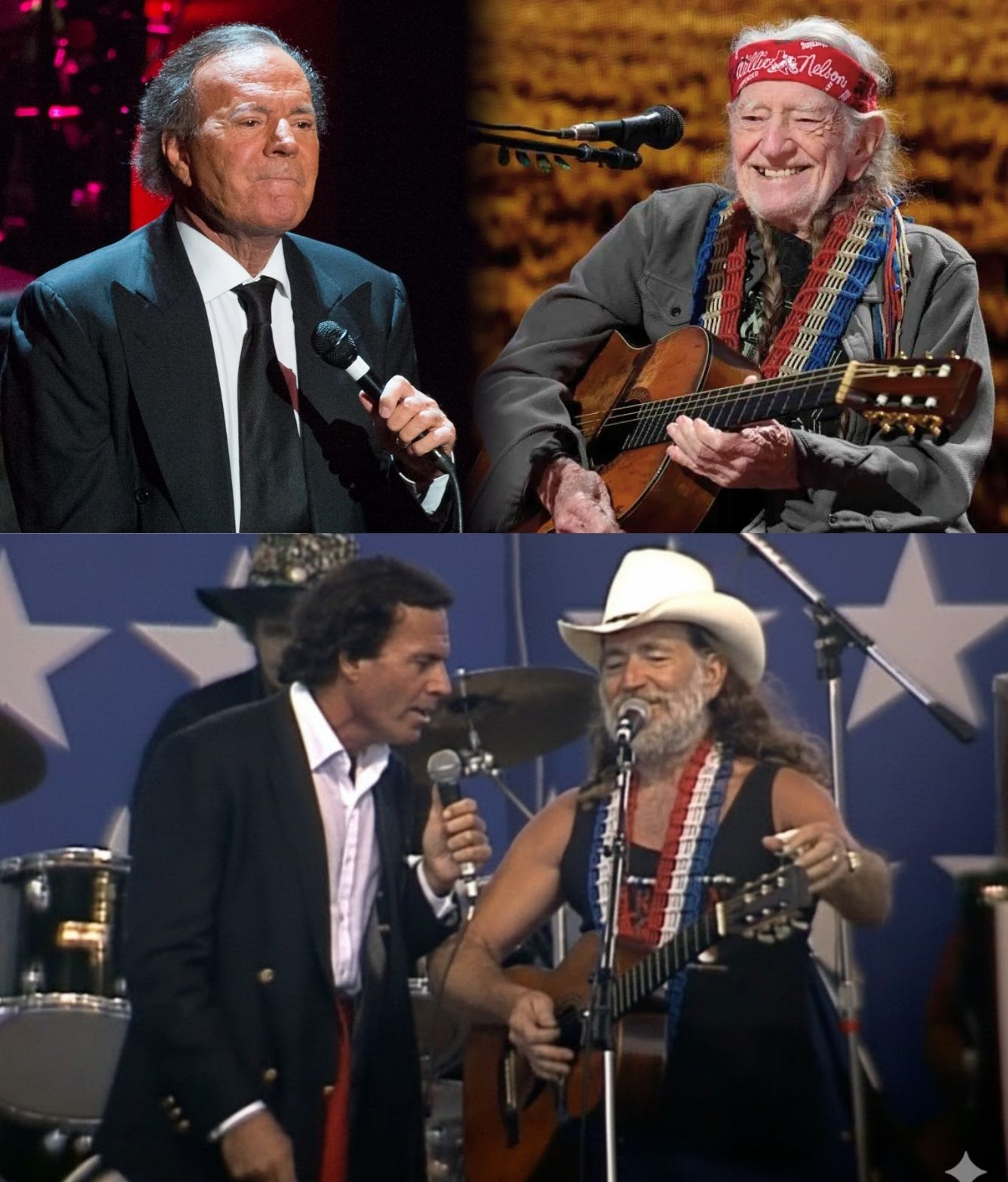 It began as a simple duet — a playful, unexpected collaboration between two artists from two completely different worlds. On one side stood Willie Nelson, the quiet Texas storyteller with a weathered voice and a heart full of roads. On the other side stood Julio Iglesias, the smooth, romantic crooner whose voice carried warmth across oceans. No one knew what would happen when they stepped into the studio together. Few suspected they were about to record a song that would echo across generations.