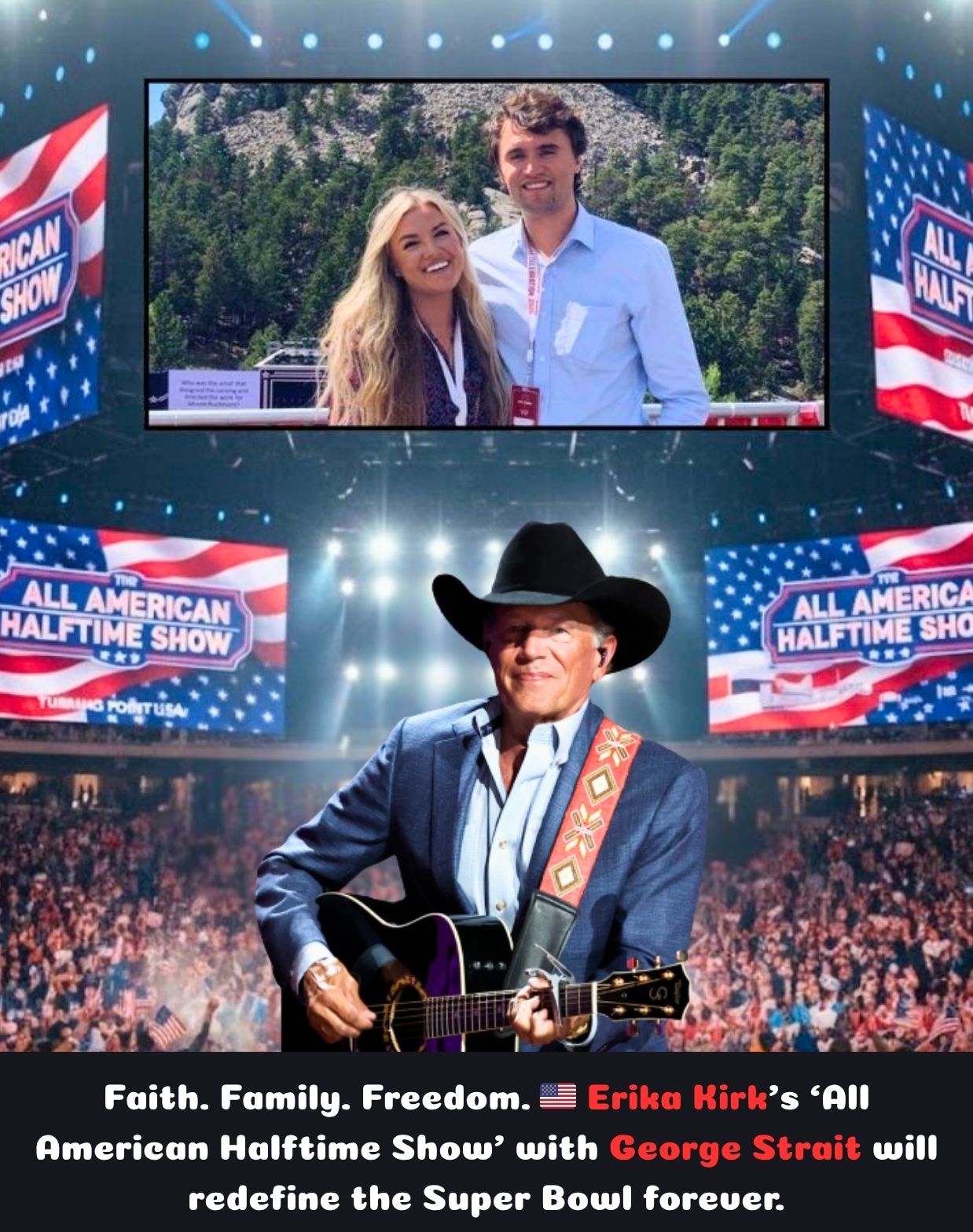 Social media erupted within minutes of the announcement. Hashtags like #AllAmericanHalftimeShow and #ForCharlie began trending, with fans calling it “the most meaningful thing to happen to the Super Bowl in years.” Many shared clips of Erika’s emotional speech, while others praised George Strait for lending his voice and heart to something far greater than performance.