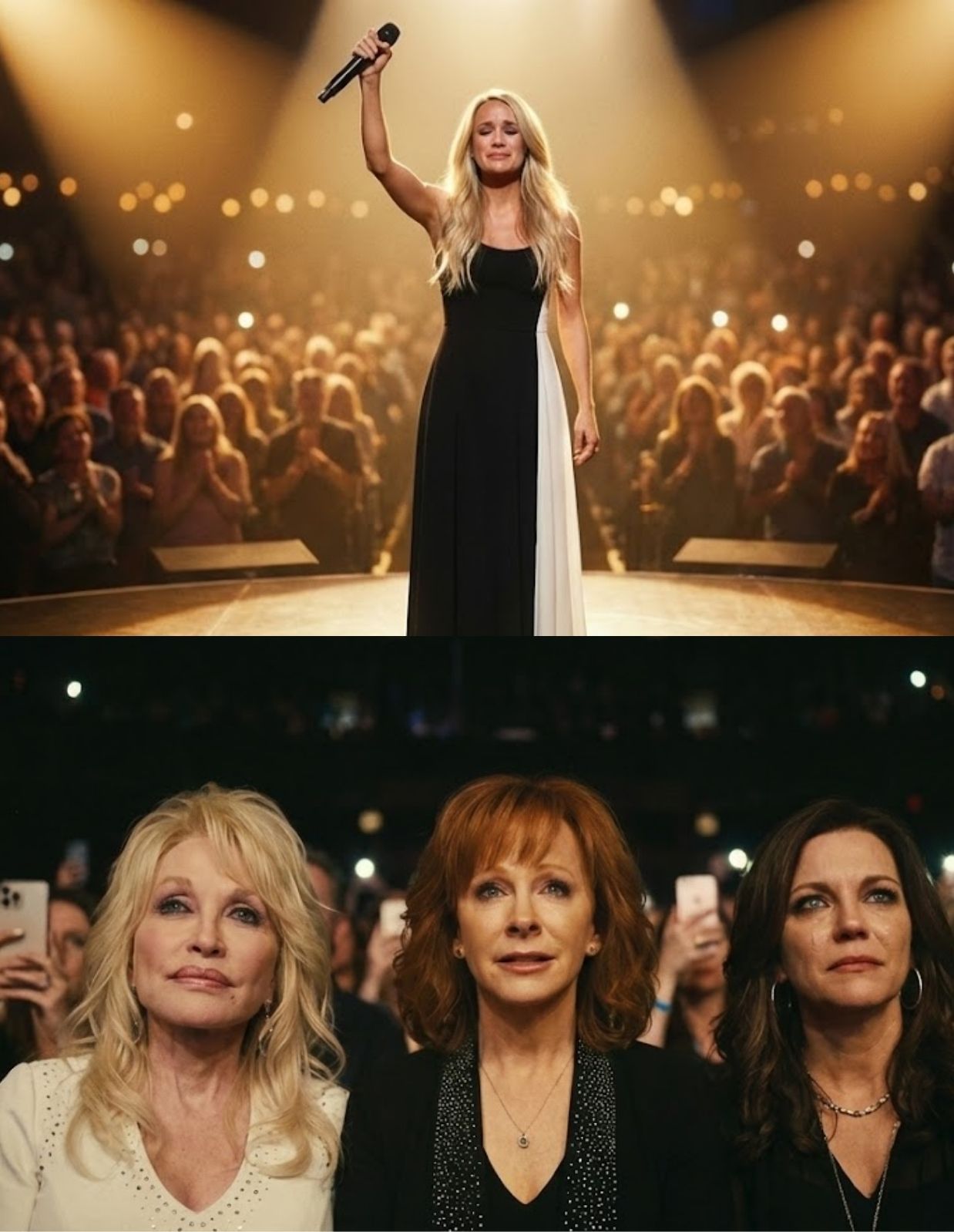 Many later said it felt as if the women who paved the way were there—standing beside her, unseen but unmistakably present. As if Patsy’s tenderness, Reba’s fire, and Martina’s unwavering resolve had gathered, steadying Carrie, lifting her higher, reminding her—and everyone watching—that she does not stand alone.