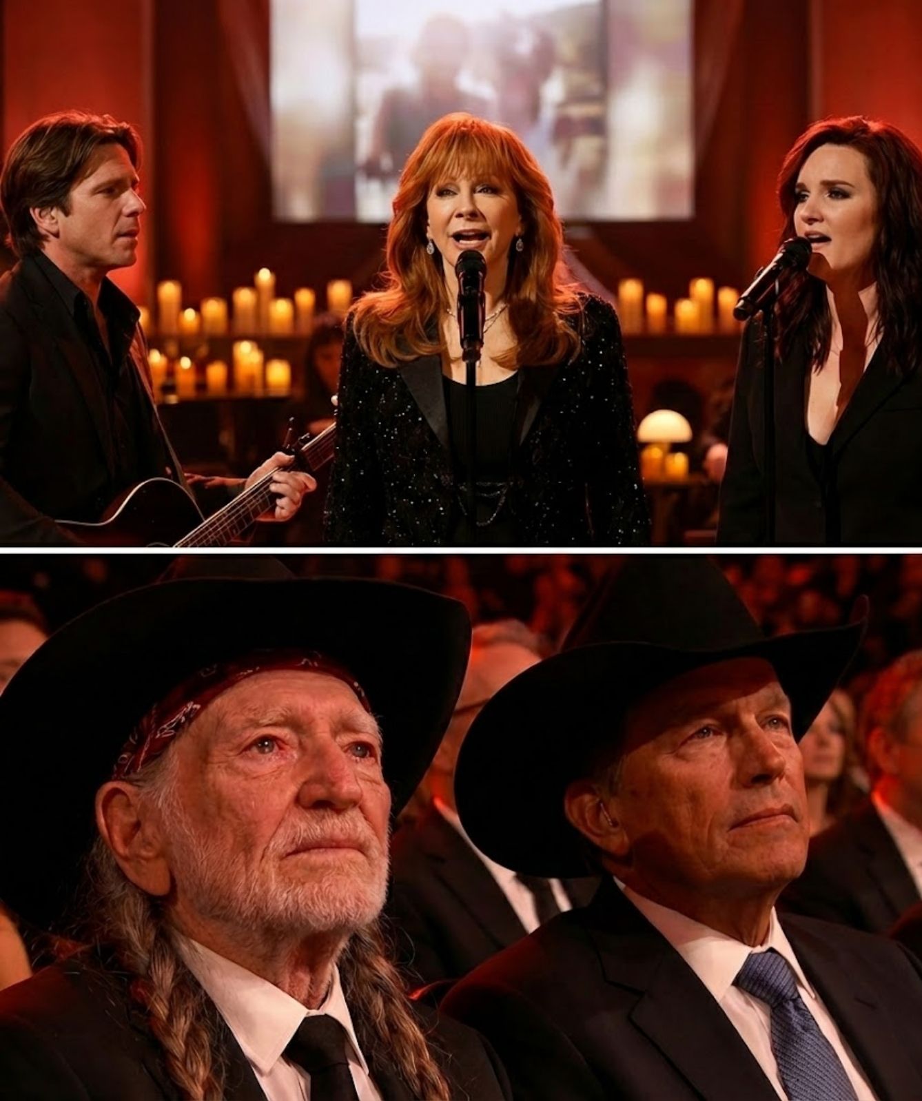 Her voice wrapped around Reba’s and Lukas’s like a promise — steady, unwavering, protective. It was the sound of chosen family, of love that does not require explanation. Together, the three voices formed something unshakable: a living circle of remembrance.