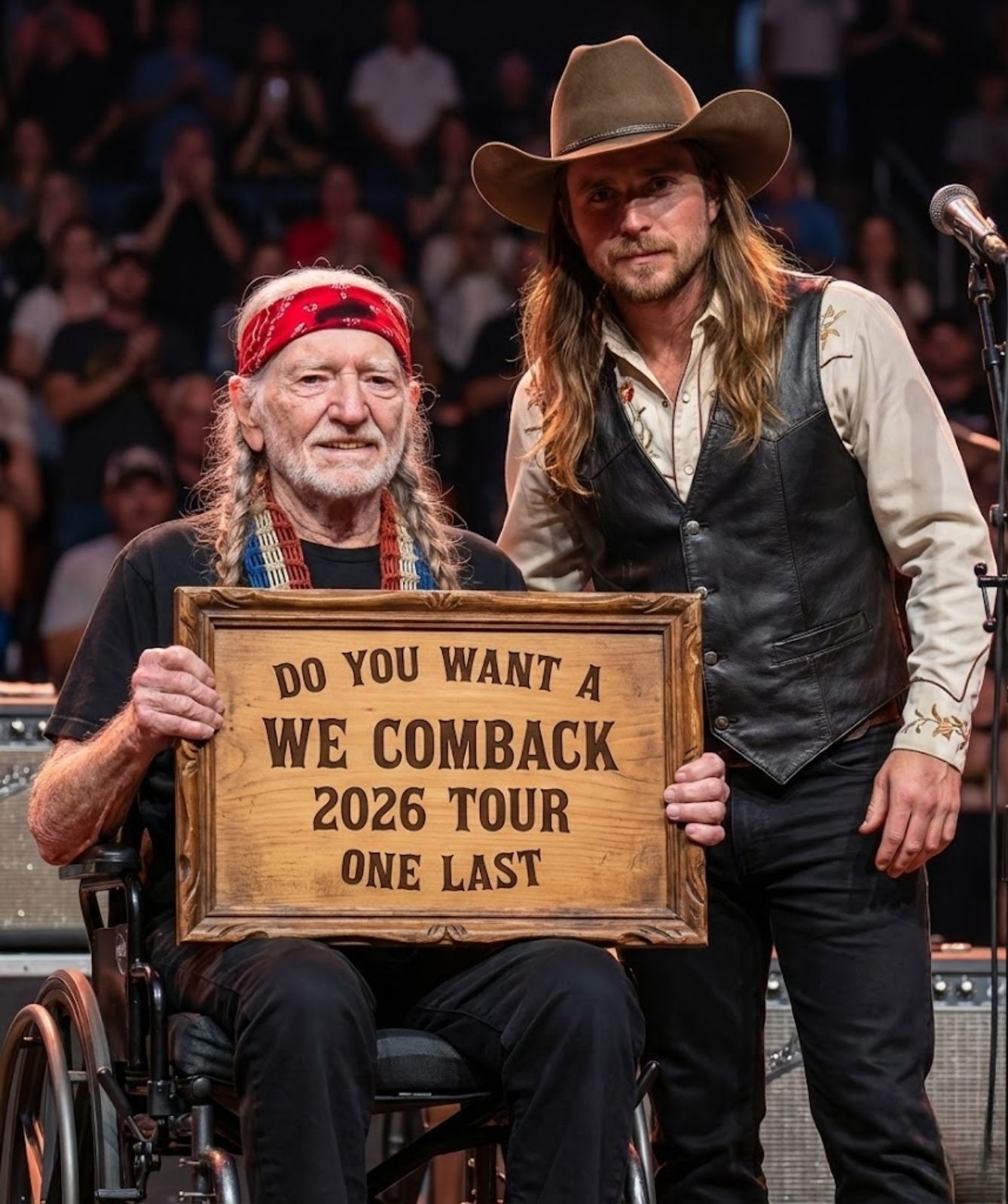 Willie did not sing loudly. He did not need to. His voice carried something stronger than volume: truth. And Lukas, sitting just a few feet away, seemed to understand that this was not simply a performance. It was a passing of presence, something no audience could demand or recreate.