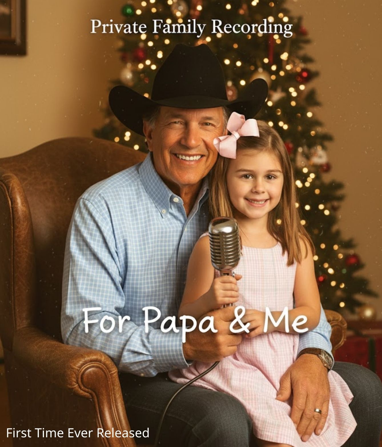 For years, the story remained tucked inside the Strait home: George, sitting with his young granddaughter perched gently on his lap, an old guitar resting across both of them as naturally as breath itself. There was no studio, no producer leaning over a mixing board, no polished equipment — only a simple recorder, a quiet room, and a grandfather sharing a piece of his heart with the next branch of his family tree.
