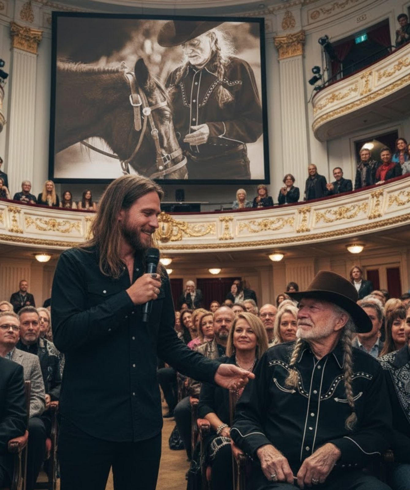In the front row sat Willie Nelson, surrounded by fellow musicians and lifelong friends — people who had shared stages, songs, and decades of road-worn truth with him. Yet in that moment, he felt singular. He was not the outlaw icon. Not the legend. Not the symbol of American music history.