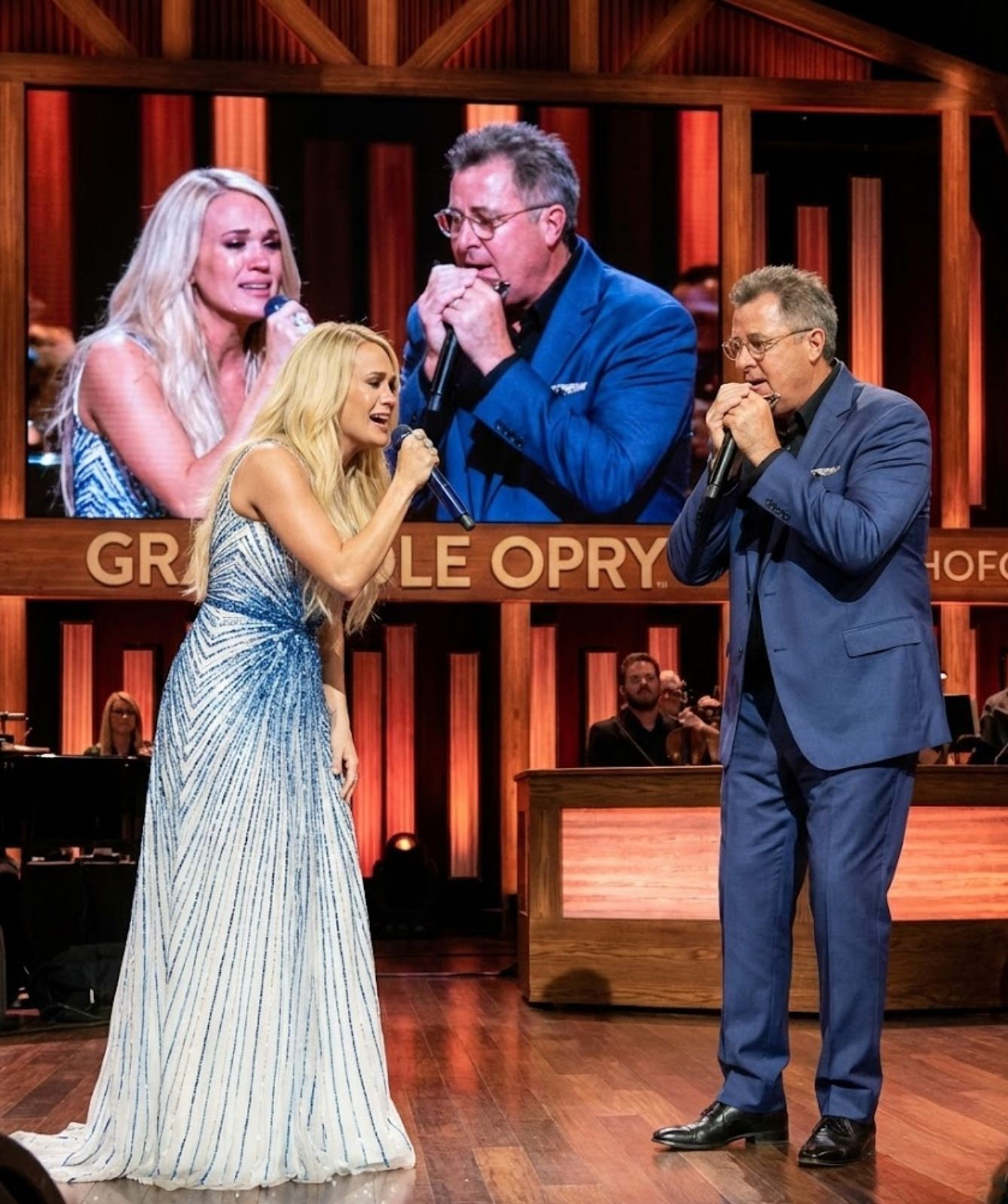 What made the moment extraordinary was its humility. Neither Carrie nor Vince attempted to elevate the song with excess. They trusted its strength. They trusted the silence between lines. They allowed the hymn to breathe — and in doing so, allowed the room to breathe with it.