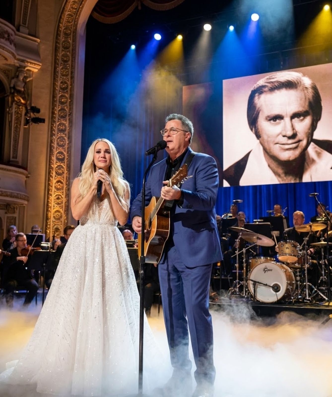There are moments in music history that do not belong to the charts, the headlines, or the applause. They belong to memory, to silence, and to the shared understanding of a room filled with people who know exactly what has been lost — and what still remains. This was one of those moments. A moment when George Jones’s life was not retold through stories or statistics, but through a song that felt less like a performance and more like a collective prayer.