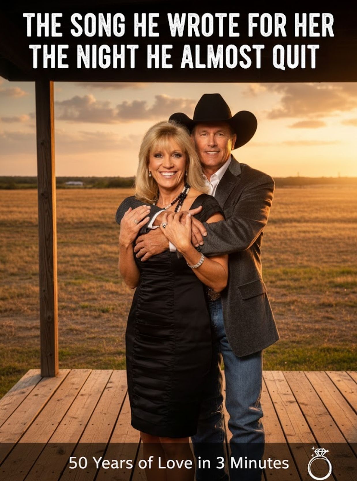 That night, after the show ended and the house fell still, George sat alone in the dim light of their home. The room was silent except for the creak of the old porch boards settling outside and the distant hum of Texas wind moving through the grass. He leaned back, guitar across his lap, and something inside him unlocked. Not a performance. Not a pressure. Not a duty to fans or charts. Just a man talking to the one constant in his life for more than fifty years.