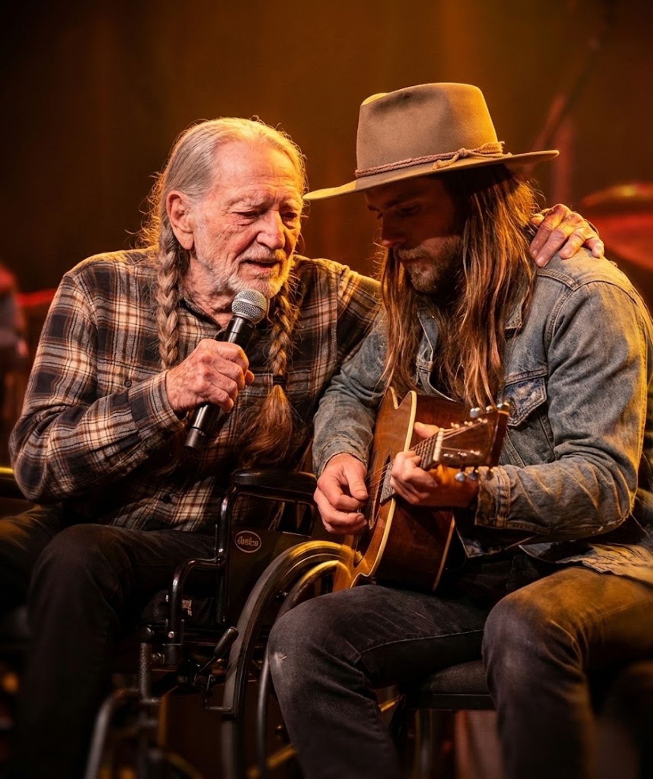 For a brief second, confusion flickered across Willie’s face — the kind that comes not from uncertainty, but from disbelief. His eyes widened, scanning the stage as if to confirm what his heart already sensed. Then the first notes arrived, soft but deliberate, and understanding settled in.