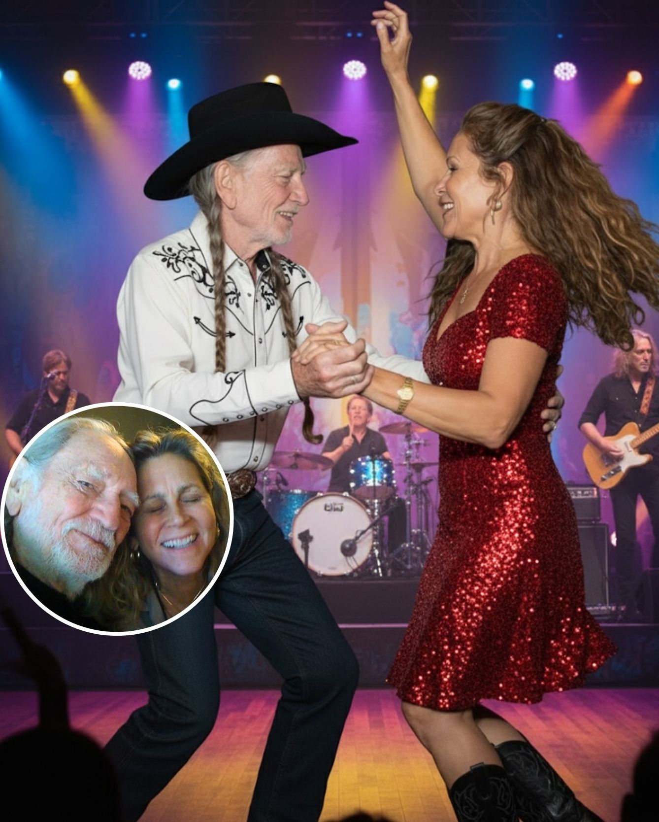 The crowd hushed as Willie reached toward the edge of the stage, where his wife Annie D’Angelo stood smiling. With a tenderness that only decades of love could hold, he took her hand and led her into the spotlight. The music softened — a gentle waltz blooming from the band behind them — and for a moment, everything else disappeared.