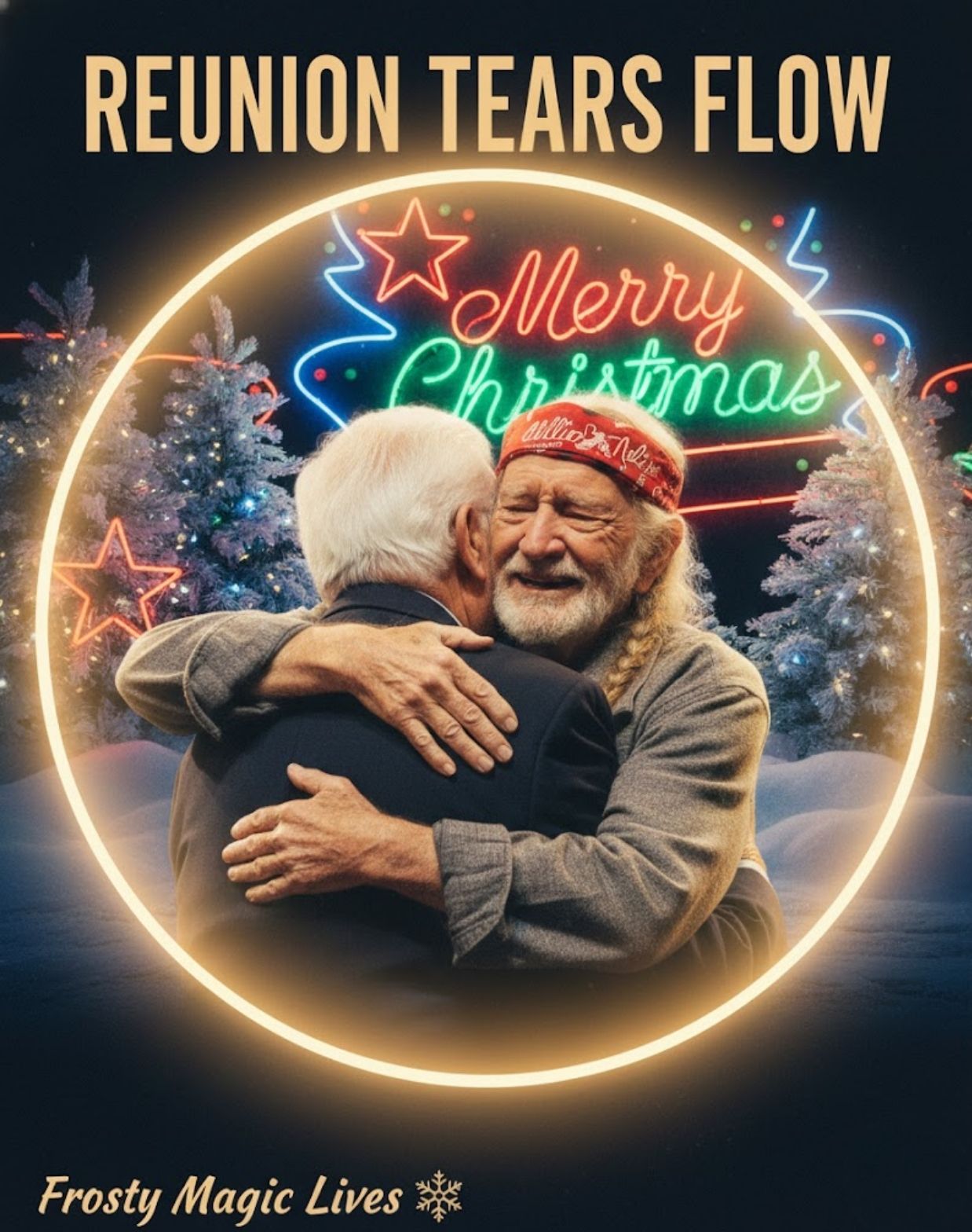 Willie stood there on that hallowed stage, surrounded by old friends, brothers-in-song who had shared miles of road, smoky backrooms, late-night laughter, and long seasons of silence between reunions. Together, they began a simple, familiar tune: “Frosty the Snowman.” A children’s song. A holiday standard. Nothing extraordinary on paper.